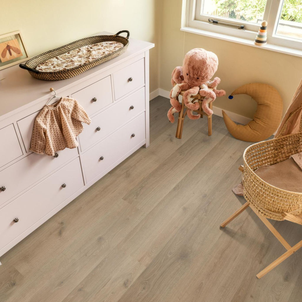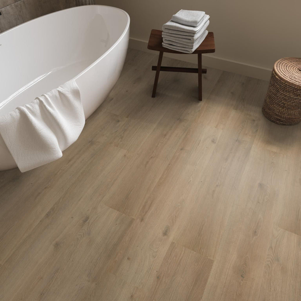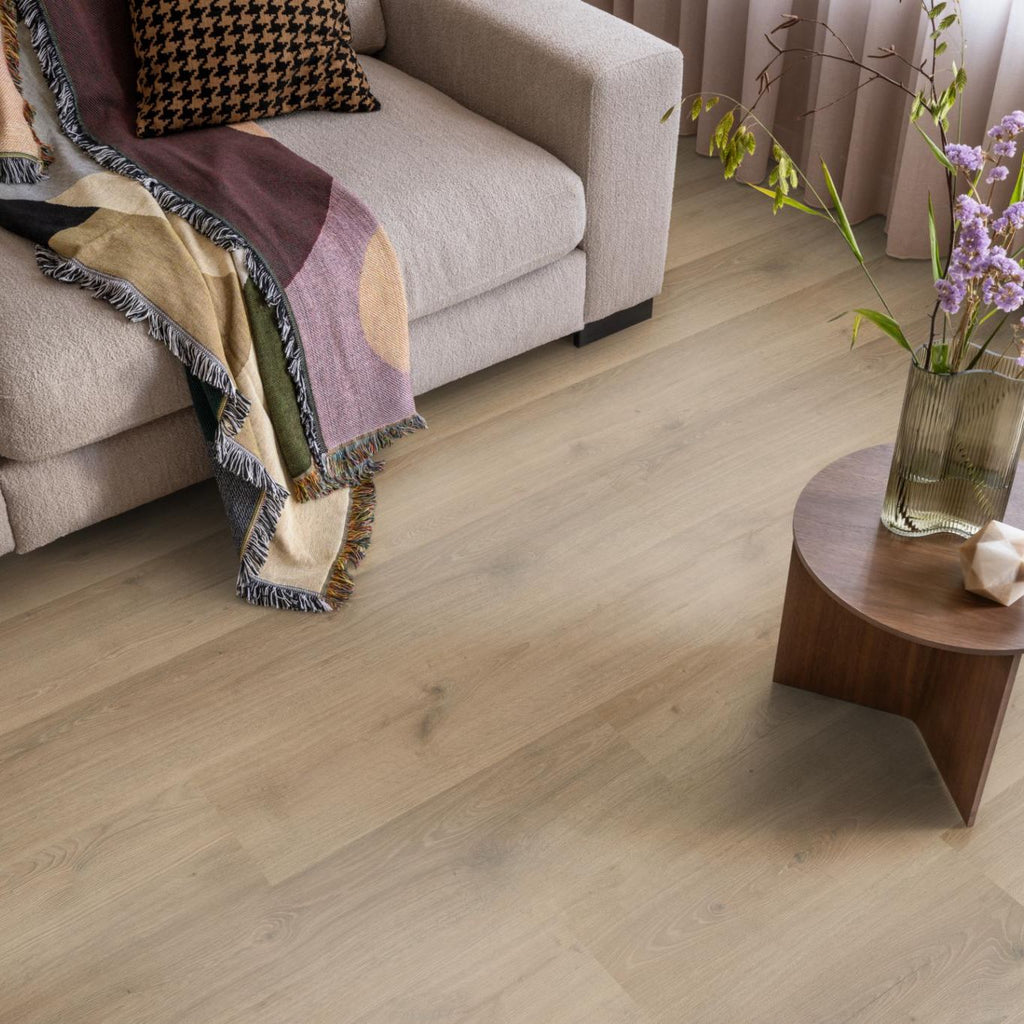 Met brede planken en een natuurgetrouwe structuur creëert de Aachen een authentieke uitstraling die warmte en karakter aan je huis toevoegt. De matte toplaag biedt een eigentijdse afwerking en is eenvoudig te onderhouden, wat ideaal is voor drukke levens. Deze waterbestendige vloer is perfect voor vochtige ruimtes zoals de badkamer, keuken en bijkeuken en zorgt voor optimaal comfort door de mogelijkheid van vloerverwarming en -koeling. Verkrijgbaar in acht moderne kleuren, past deze vloer moeiteloos in zowel moderne als tijdloze interieurs