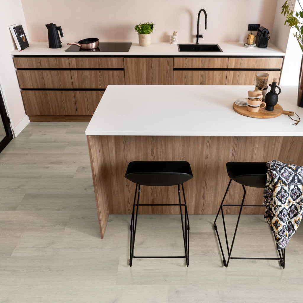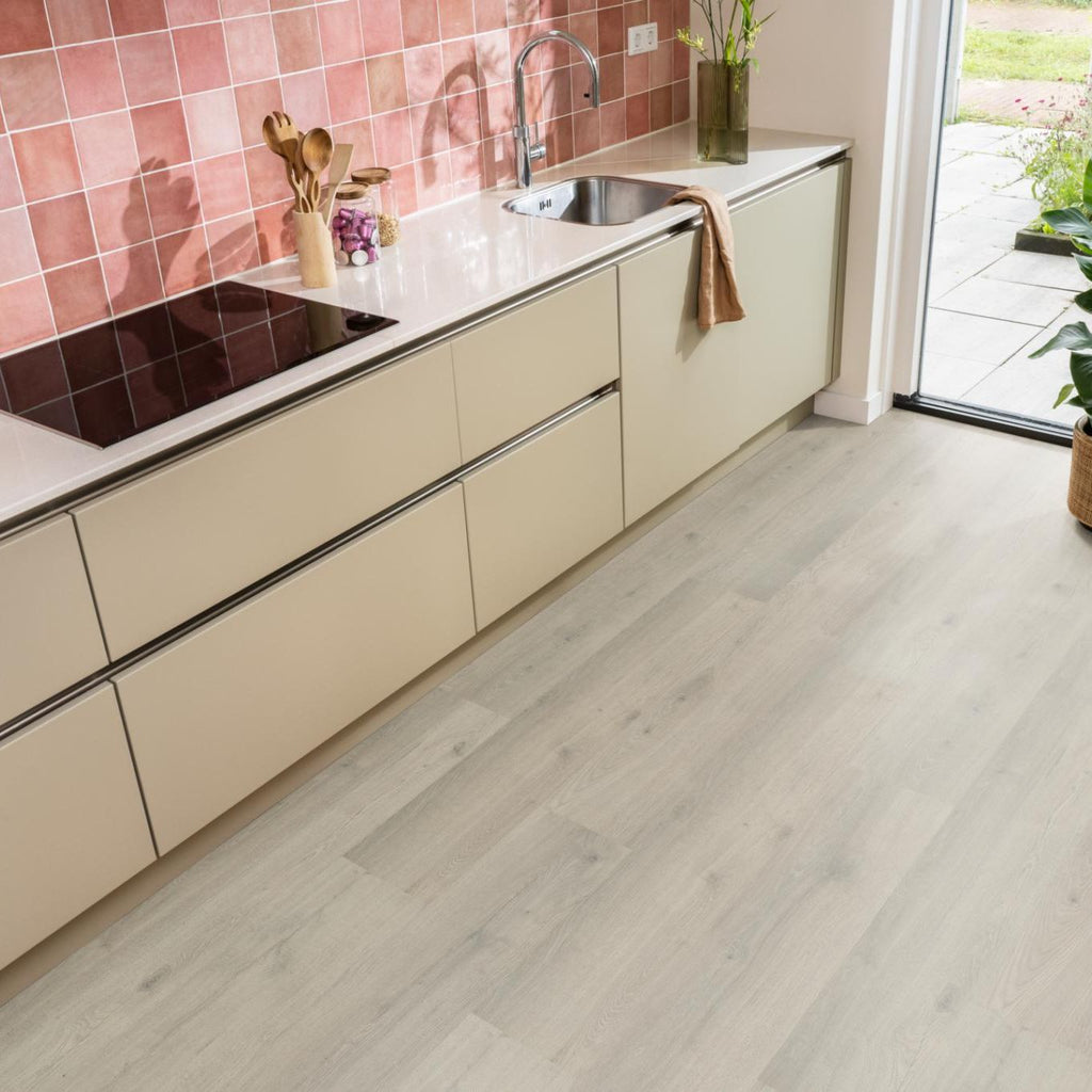 Met brede planken en een natuurgetrouwe structuur creëert de Aachen een authentieke uitstraling die warmte en karakter aan je huis toevoegt. De matte toplaag biedt een eigentijdse afwerking en is eenvoudig te onderhouden, wat ideaal is voor drukke levens. Deze waterbestendige vloer is perfect voor vochtige ruimtes zoals de badkamer, keuken en bijkeuken en zorgt voor optimaal comfort door de mogelijkheid van vloerverwarming en -koeling. Verkrijgbaar in acht moderne kleuren, past deze vloer moeiteloos in zowel moderne als tijdloze interieurs
