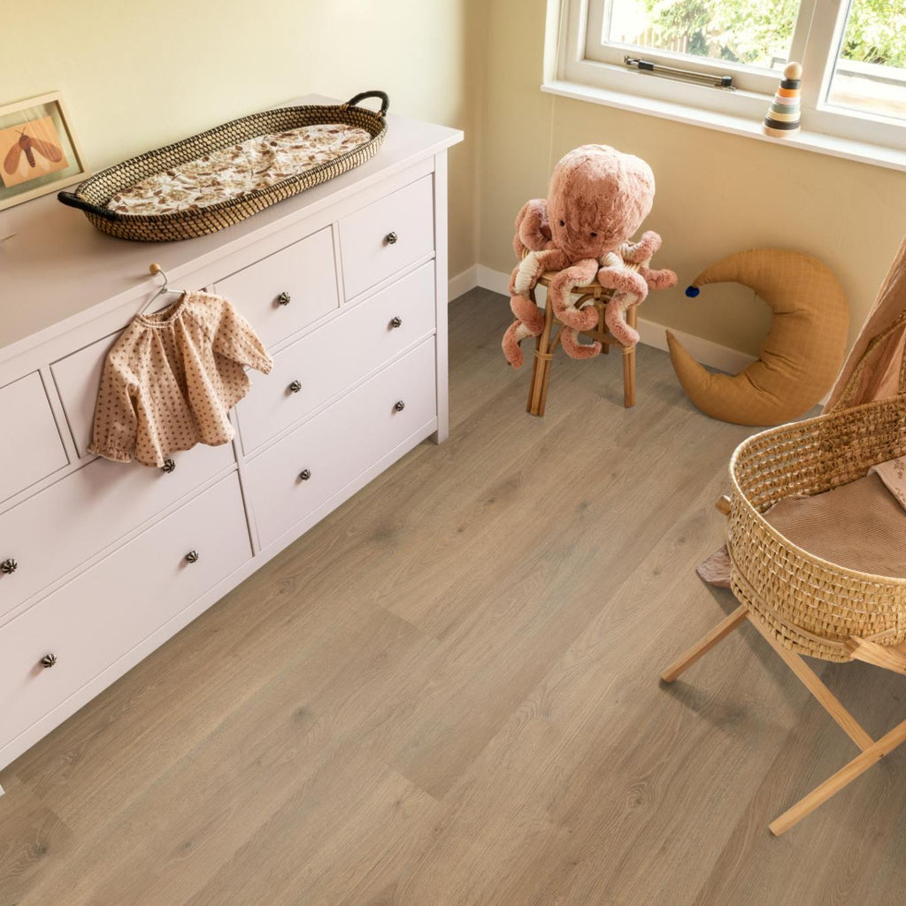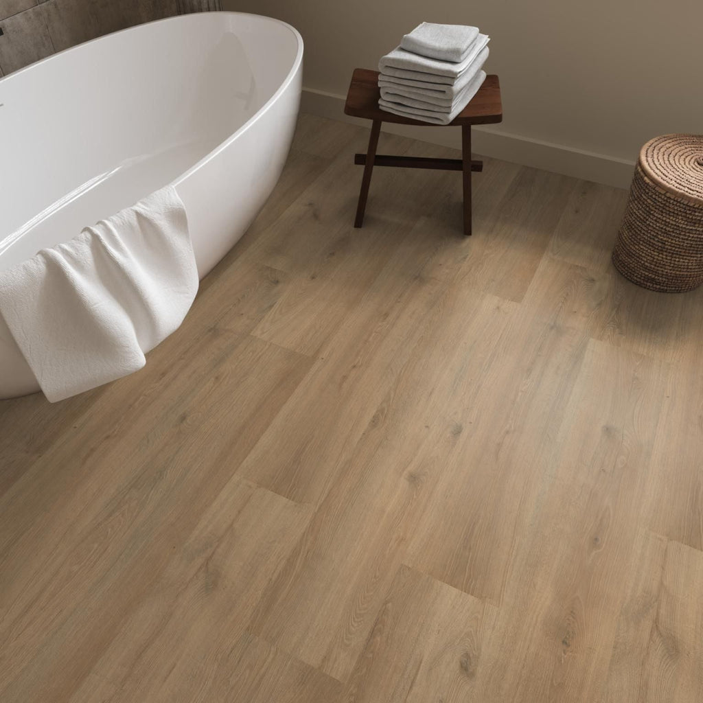 Met brede planken en een natuurgetrouwe structuur creëert de Aachen een authentieke uitstraling die warmte en karakter aan je huis toevoegt. De matte toplaag biedt een eigentijdse afwerking en is eenvoudig te onderhouden, wat ideaal is voor drukke levens. Deze waterbestendige vloer is perfect voor vochtige ruimtes zoals de badkamer, keuken en bijkeuken en zorgt voor optimaal comfort door de mogelijkheid van vloerverwarming en -koeling. Verkrijgbaar in acht moderne kleuren, past deze vloer moeiteloos in zowel moderne als tijdloze interieurs
