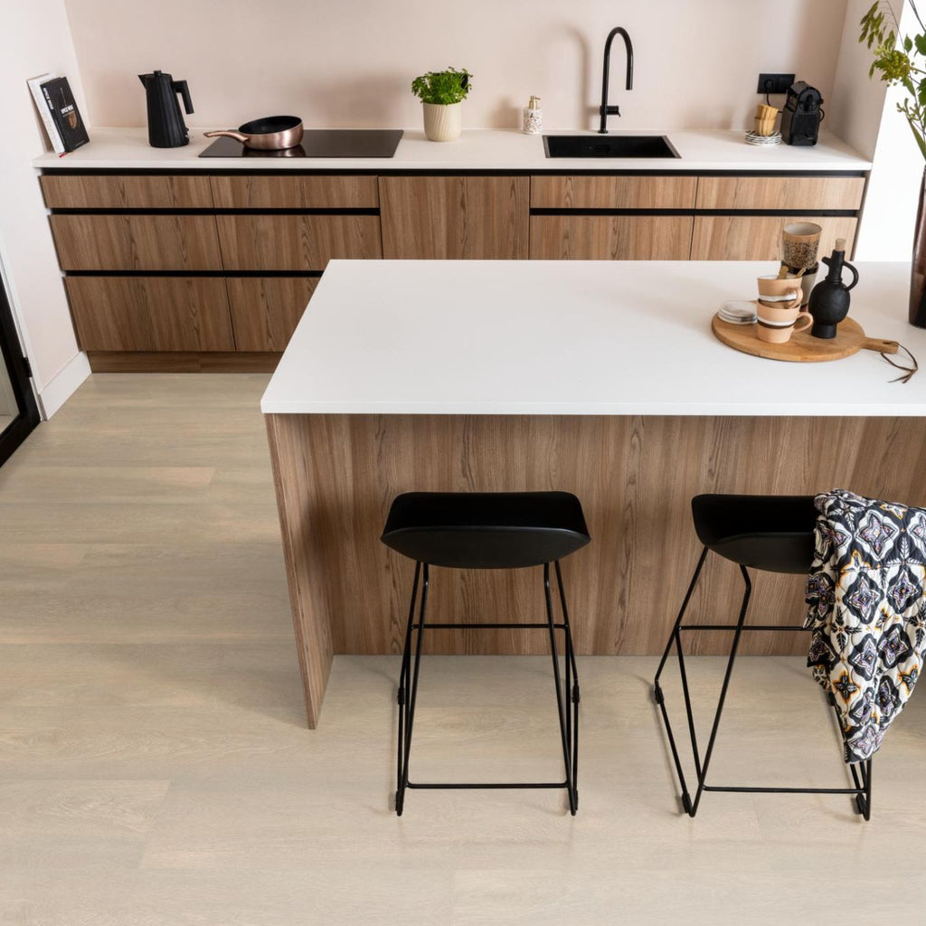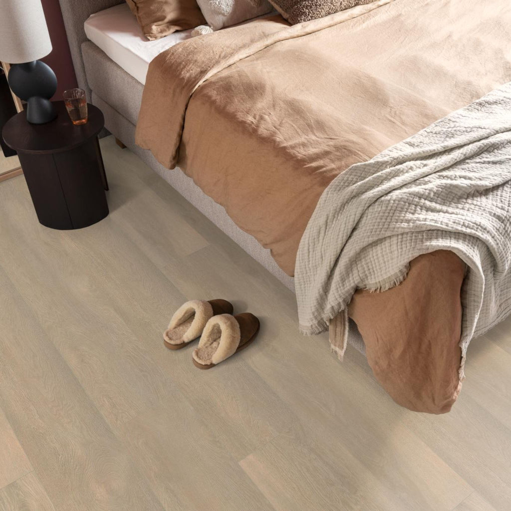 De Arnstadt kenmerkt zich door een trendy uitstraling. Deze extra brede planken zijn goed bestand tegen water en vocht, dus je hoeft je geen zorgen te maken over spetters of ongelukjes! De natuurgetrouwe structuur voegt karakter toe aan je ruimte, en de matte toplaag houdt het geheel strak en stijlvol. Bovendien is hij geschikt voor vloerverwarming en -koeling, zodat je altijd lekker comfortabel zit.