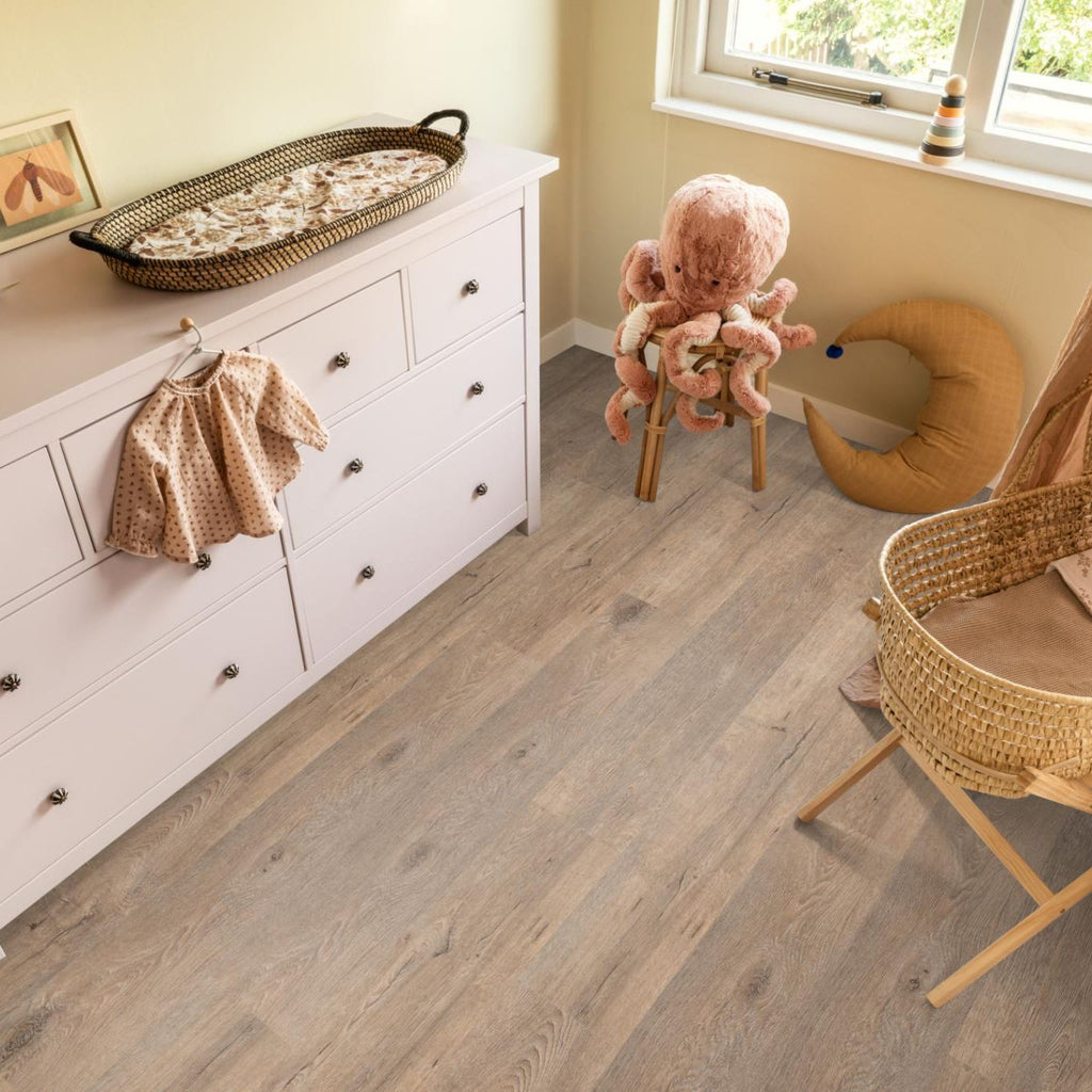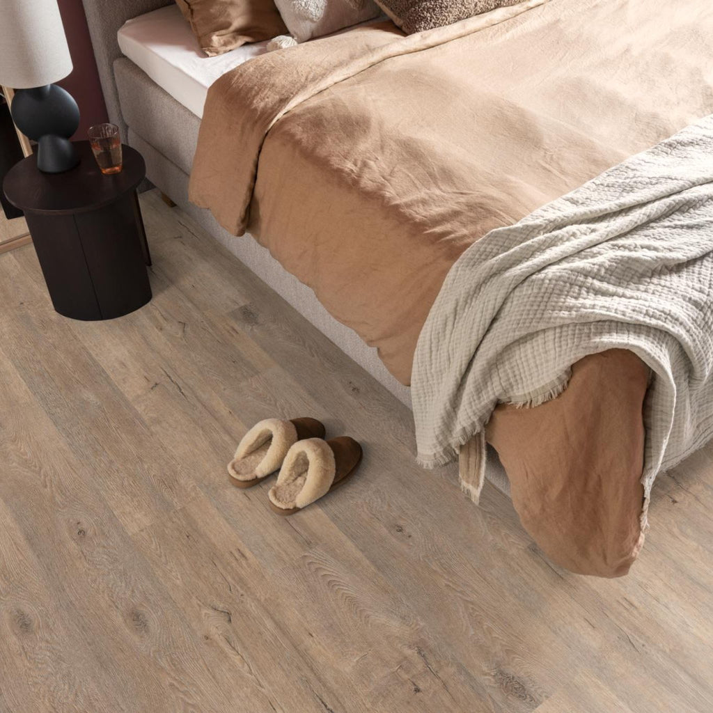 De rustieke uitstraling van eikenhout komt schitterend terug in onze vinyl collectie Calandro. De midden- en grijseiken kleuren geven een natuurlijke look in jouw interieur. Met de 0,35 mm toplaag is de vloer geschikt voor zwaar woongebruik. Daarnaast is de Calandro geschikt voor vloerverwarming waardoor je optimaal van de warmte in huis kunt genieten.