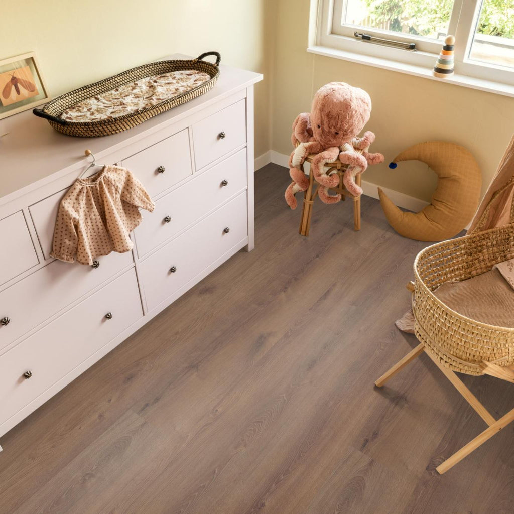 Door de mooie nerftekening in de planken heeft de Ingelstad heel veel weg van een echte houten vloer, wat zorgt voor een tijdloze uitstraling. De extra brede planken zorgen voor een ruimtelijk effect in jouw woonkamer. Dankzij de twaalf verschillende kleuren, is er altijd een passende vloer voor jouw interieur.