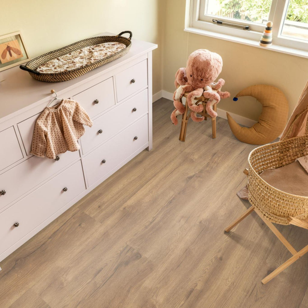 Door de mooie nerftekening in de planken heeft de Ingelstad heel veel weg van een echte houten vloer, wat zorgt voor een tijdloze uitstraling. De extra brede planken zorgen voor een ruimtelijk effect in jouw woonkamer. Dankzij de twaalf verschillende kleuren, is er altijd een passende vloer voor jouw interieur.