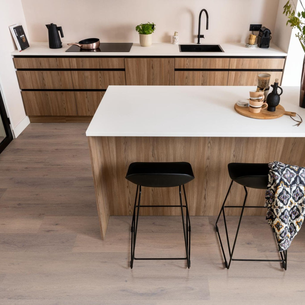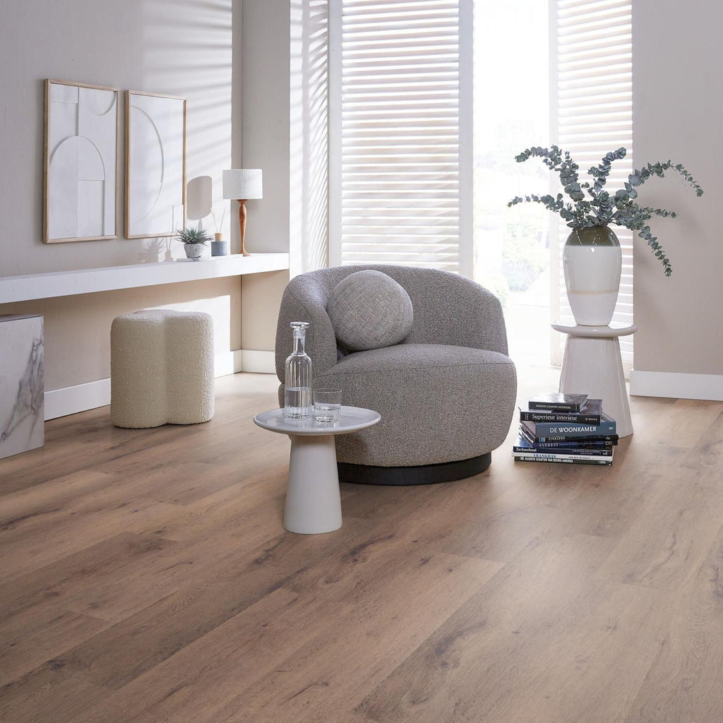 De Livera kenmerkt zich door een natuurlijke en authentieke uitstraling. De unieke matte structuur van de Livera volgt op natuurlijke wijze het houtpatroon. Met de keuze uit drie lichte eiken kleuren en een grijsbruin eiken kleur is er voor elk interieur wel een passende vloer te vinden. Deze laminaat kwaliteit is een echte eyecatcher in een industrieel landelijk interieur, maar past ook heel goed bij andere woonstijlen.