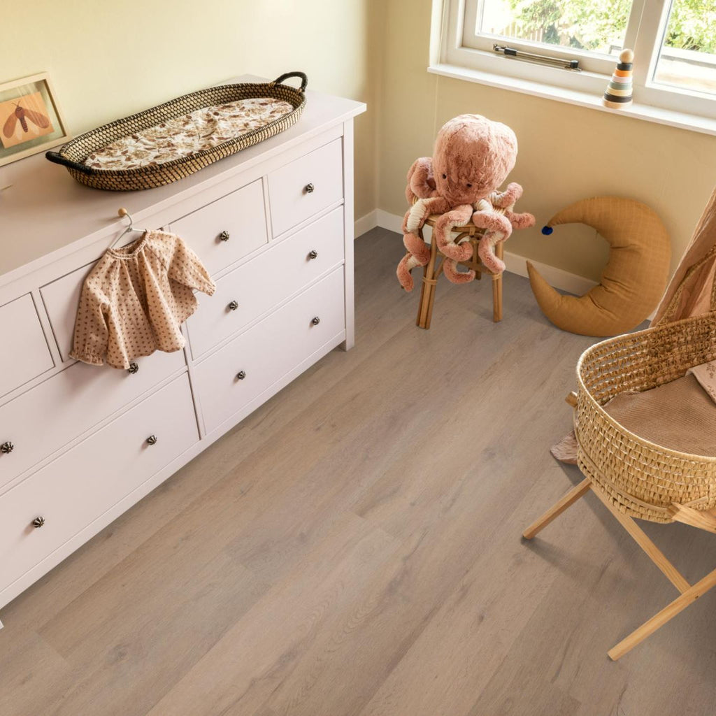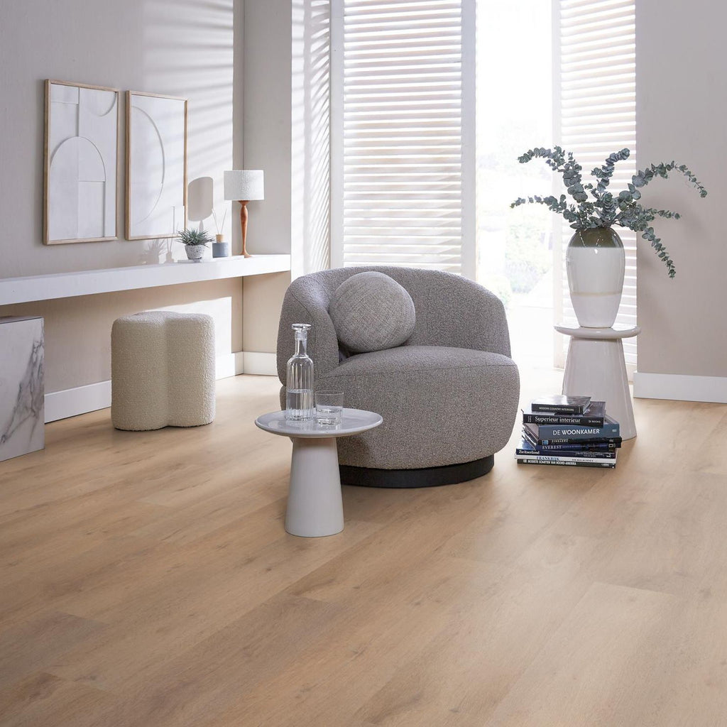 De Livera kenmerkt zich door een natuurlijke en authentieke uitstraling. De unieke matte structuur van de Livera volgt op natuurlijke wijze het houtpatroon. Met de keuze uit drie lichte eiken kleuren en een grijsbruin eiken kleur is er voor elk interieur wel een passende vloer te vinden. Deze laminaat kwaliteit is een echte eyecatcher in een industrieel landelijk interieur, maar past ook heel goed bij andere woonstijlen.