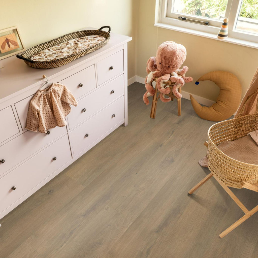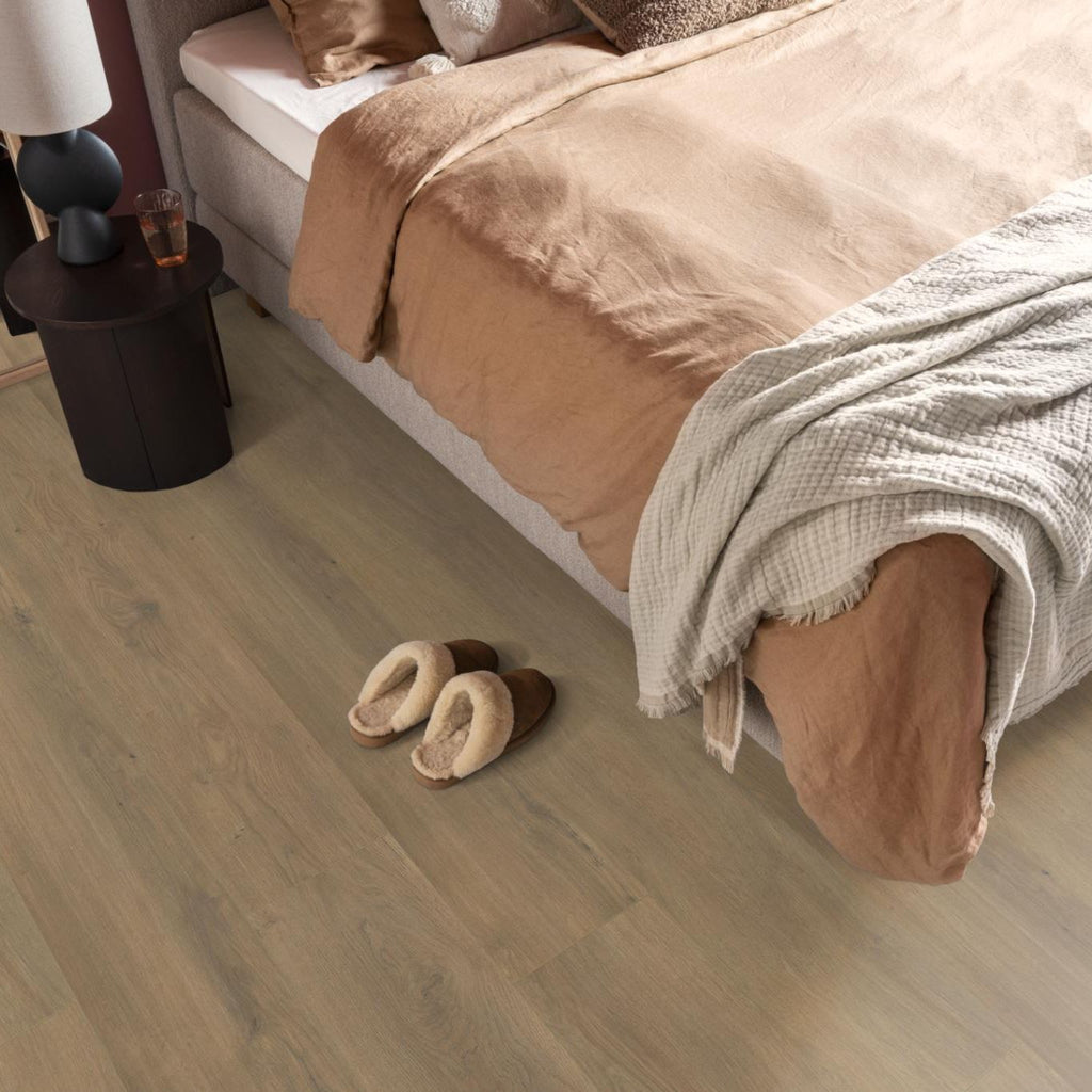 De Sereno, verkrijgbaar in vier moderne kleuren, geeft je interieur een robuuste uitstraling met zijn extra brede planken. Brede laminaatplanken zorgen voor een rustig en egaal effect, waardoor je ruimte direct groter oogt. De allover structuur en matte toplaag maken de vloer veelzijdig, passend bij elke interieurstijl. Bovendien is Sereno geschikt voor zowel vloerverwarming als -koeling, zodat je het hele jaar door geniet van ultiem comfort.