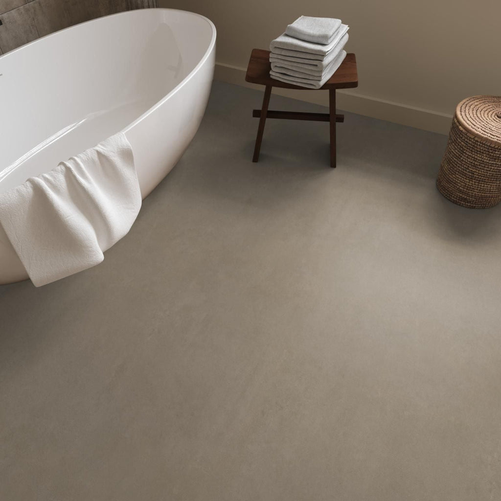 De Ambiant vinyl Sisler heeft een mooie all-over print, waardoor het veel weg heeft van een echte betonlook vloer. De beige en grijze tinten van deze kwaliteiten passen perfect in een trendy industrieel interieur. De vloer is gemakkelijk schoon te maken en is geschikt voor vloerverwarming.