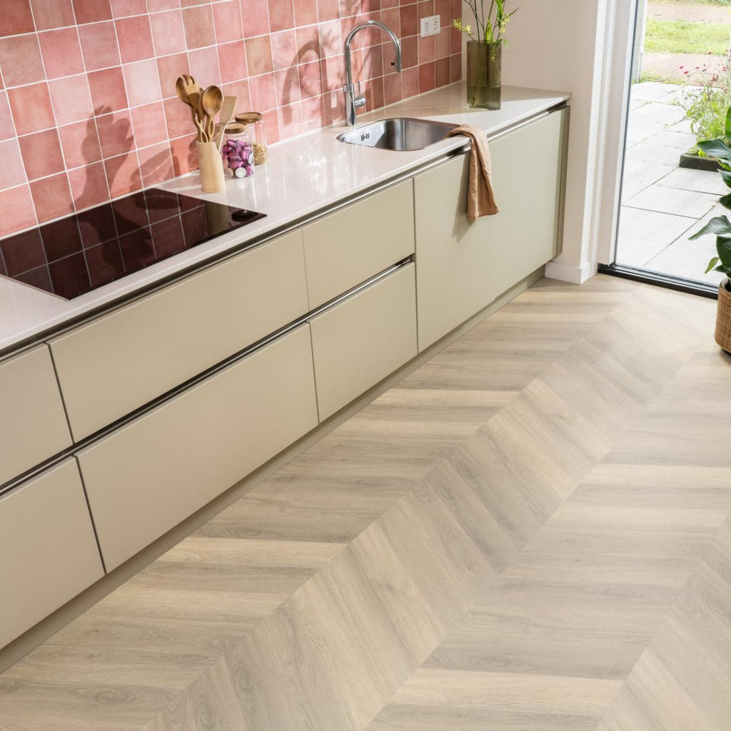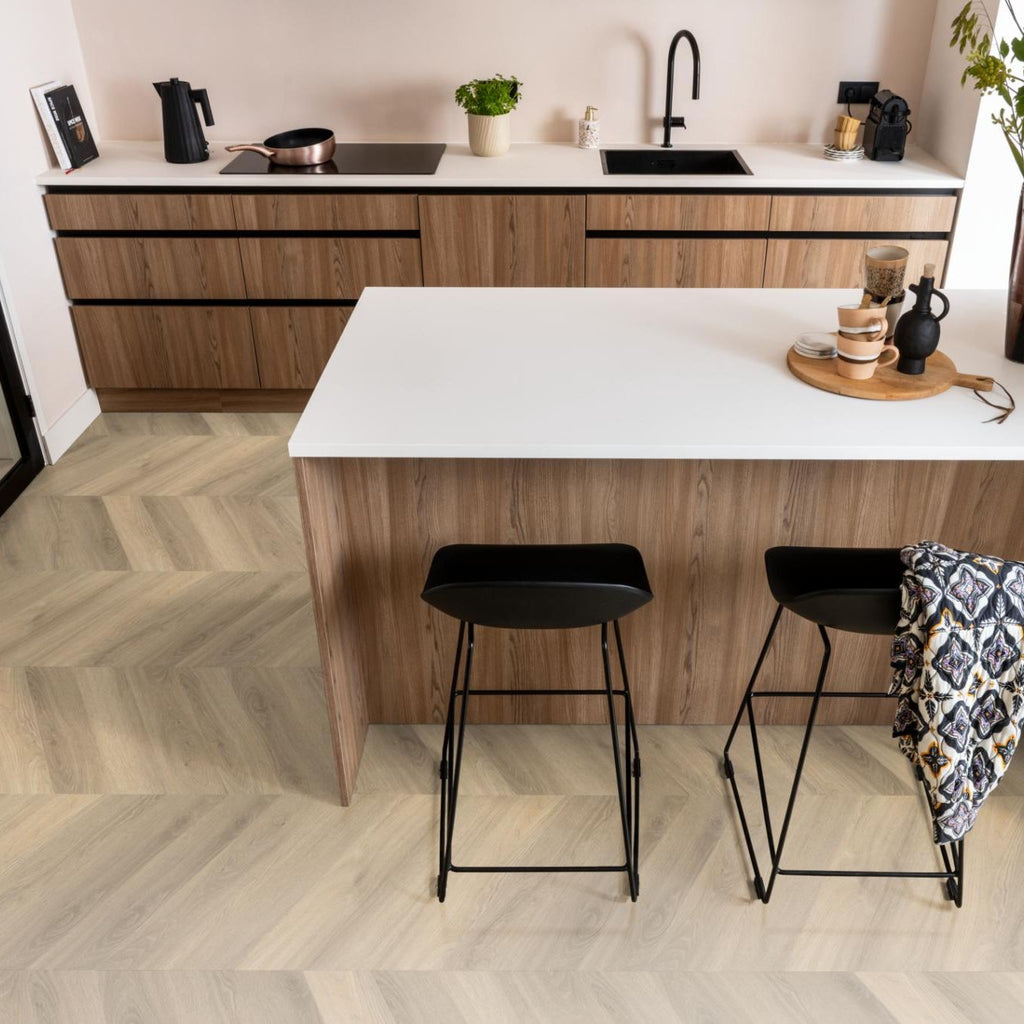 Ambiant Spigato Hongaarse Punt Dryback Beige - Plak PVC Vloer