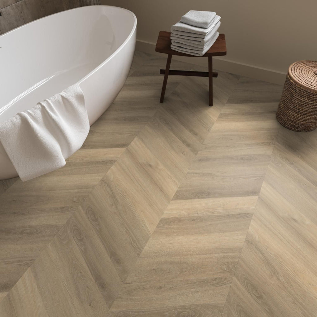 Omschrijving Ambiant Spigato Hongaarse Punt Dryback Beige - Plak PVC Vloer